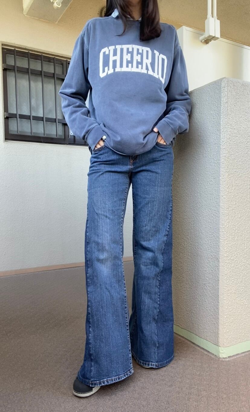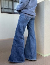 USEDデニムを1.5本使用し、ダボっとした最高のフレアが完成です
