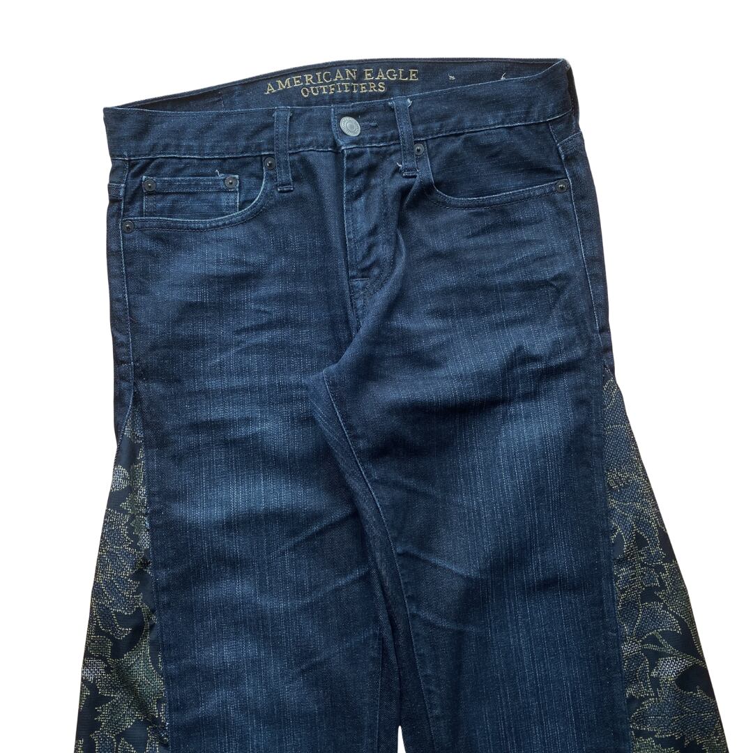 Vintage flared jeans combined with Japanese kimono fabric on the sides. Each pair is unique and handmade. Perfect for casual or stylish streetwear.
