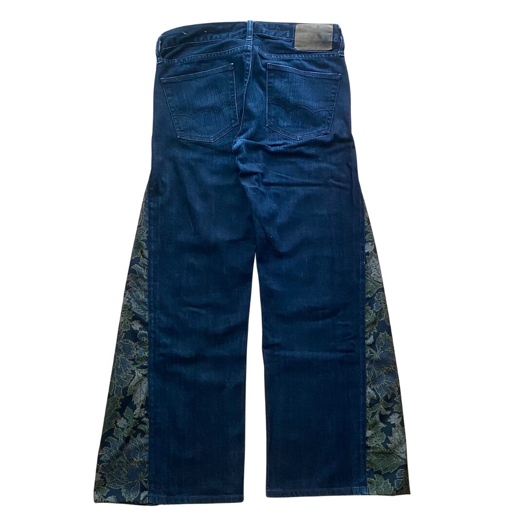 ヴィンテージデニムに日本の着物生地をサイドにドッキングした、フレアデザインのデニムパンツ。