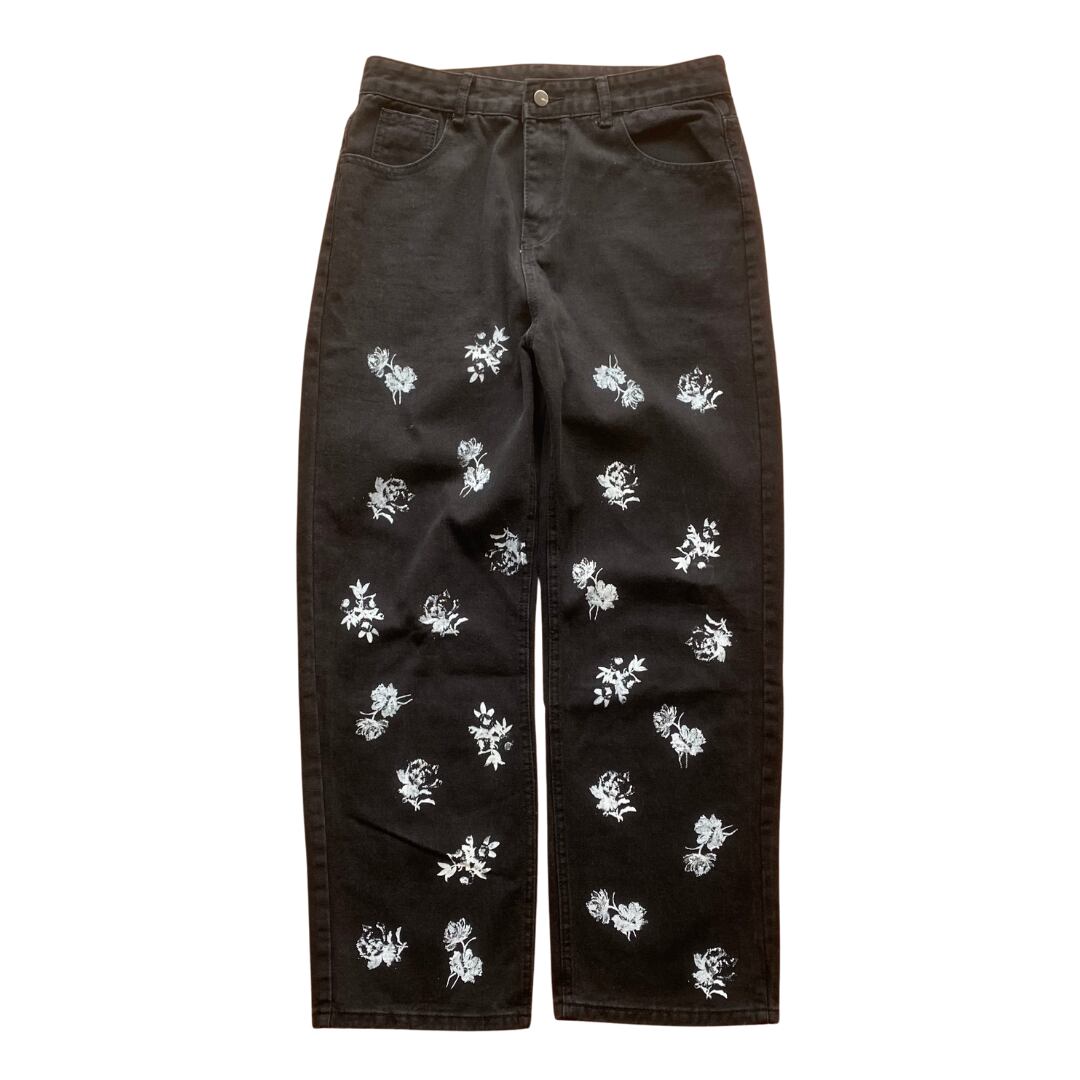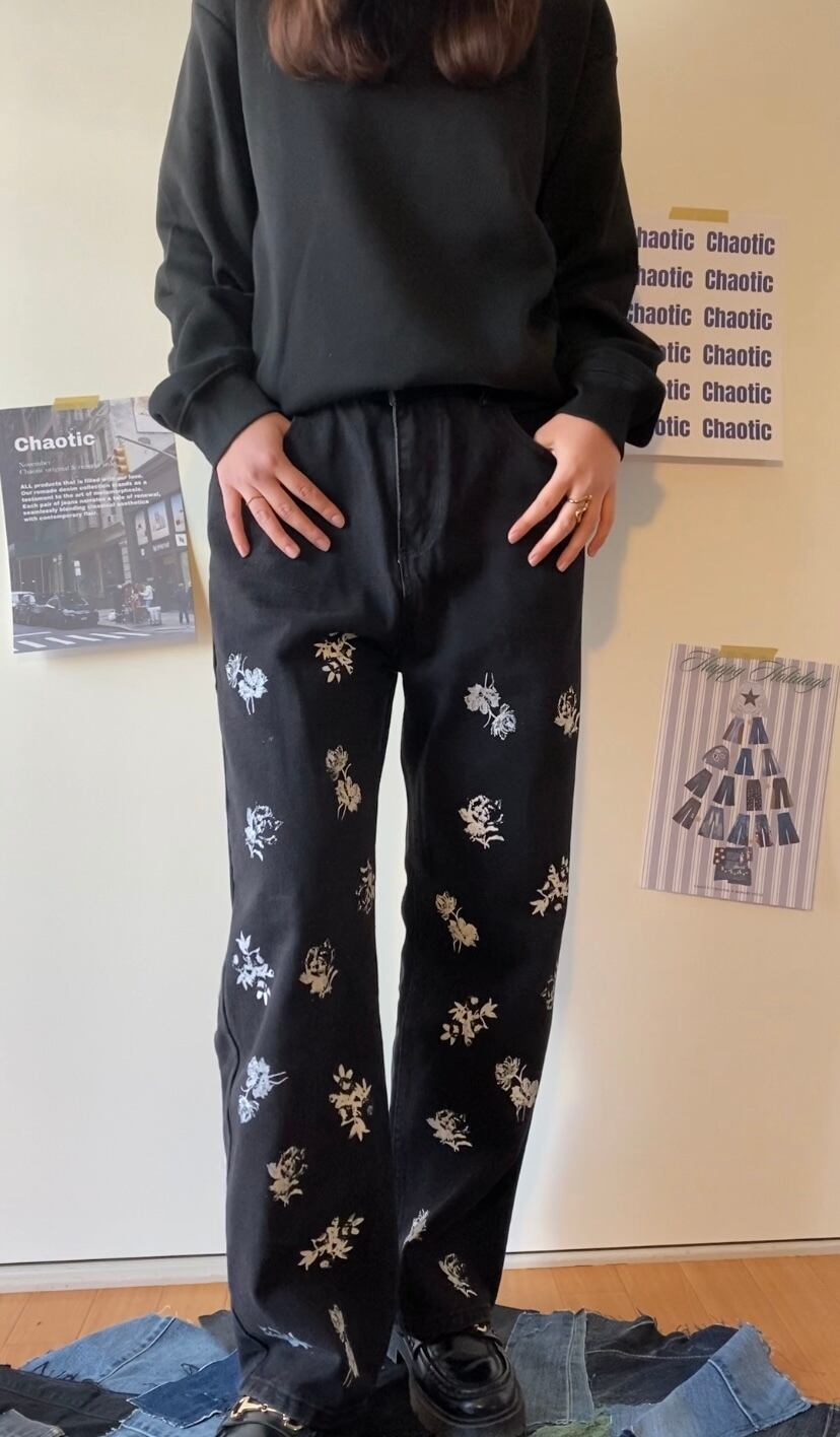 #ストリート#プリントアート#リメイクデニム #花柄デニム #シルクスクリーン #再構築ファッション #ユニセックスコーデ #アートファッション #古着リメイク