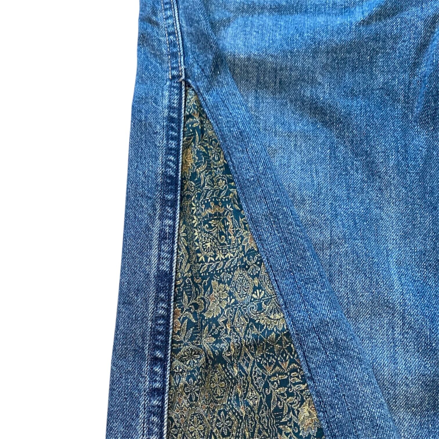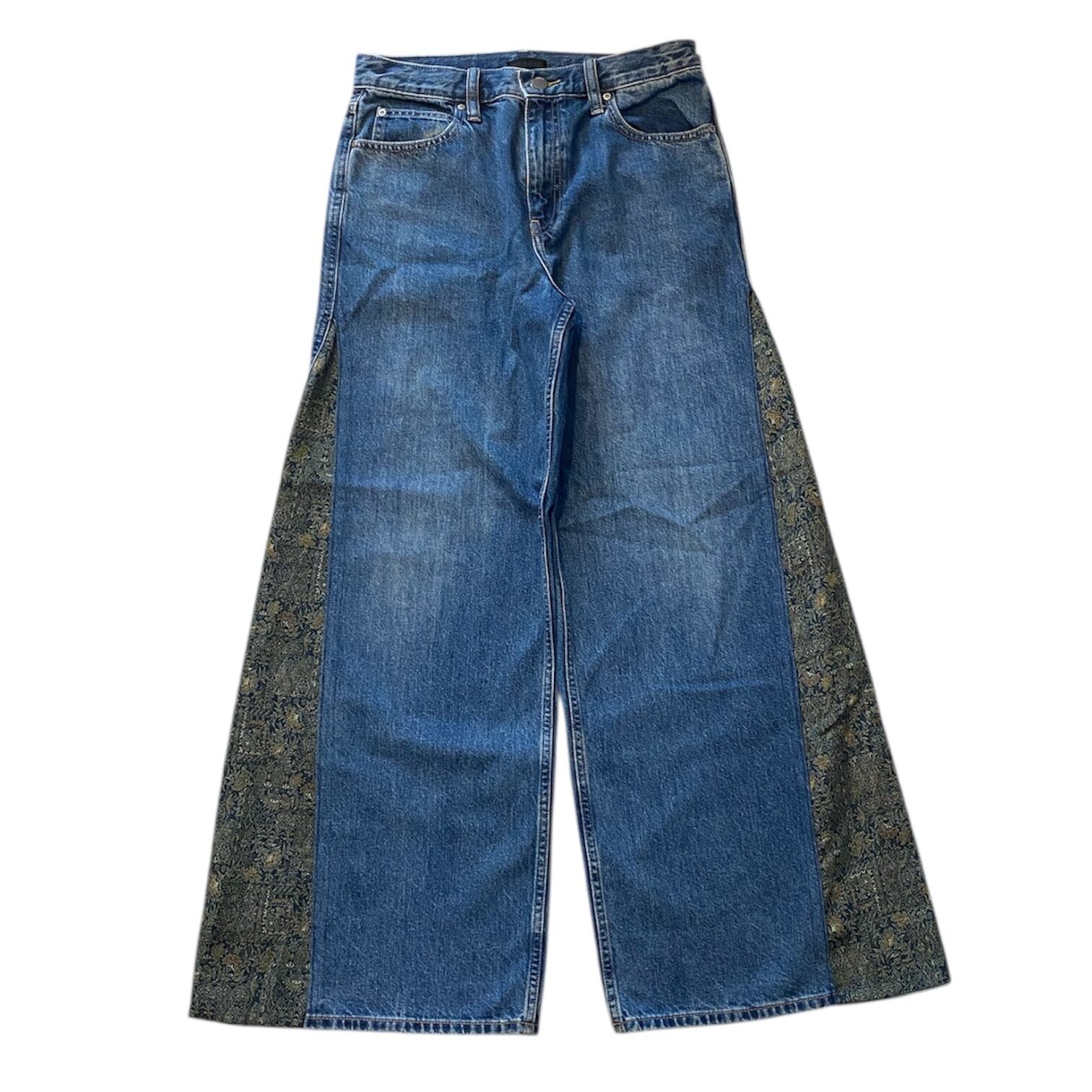 ヴィンテージデニムに日本の着物生地をサイドにドッキングした、フレアデザインのデニムパンツ。