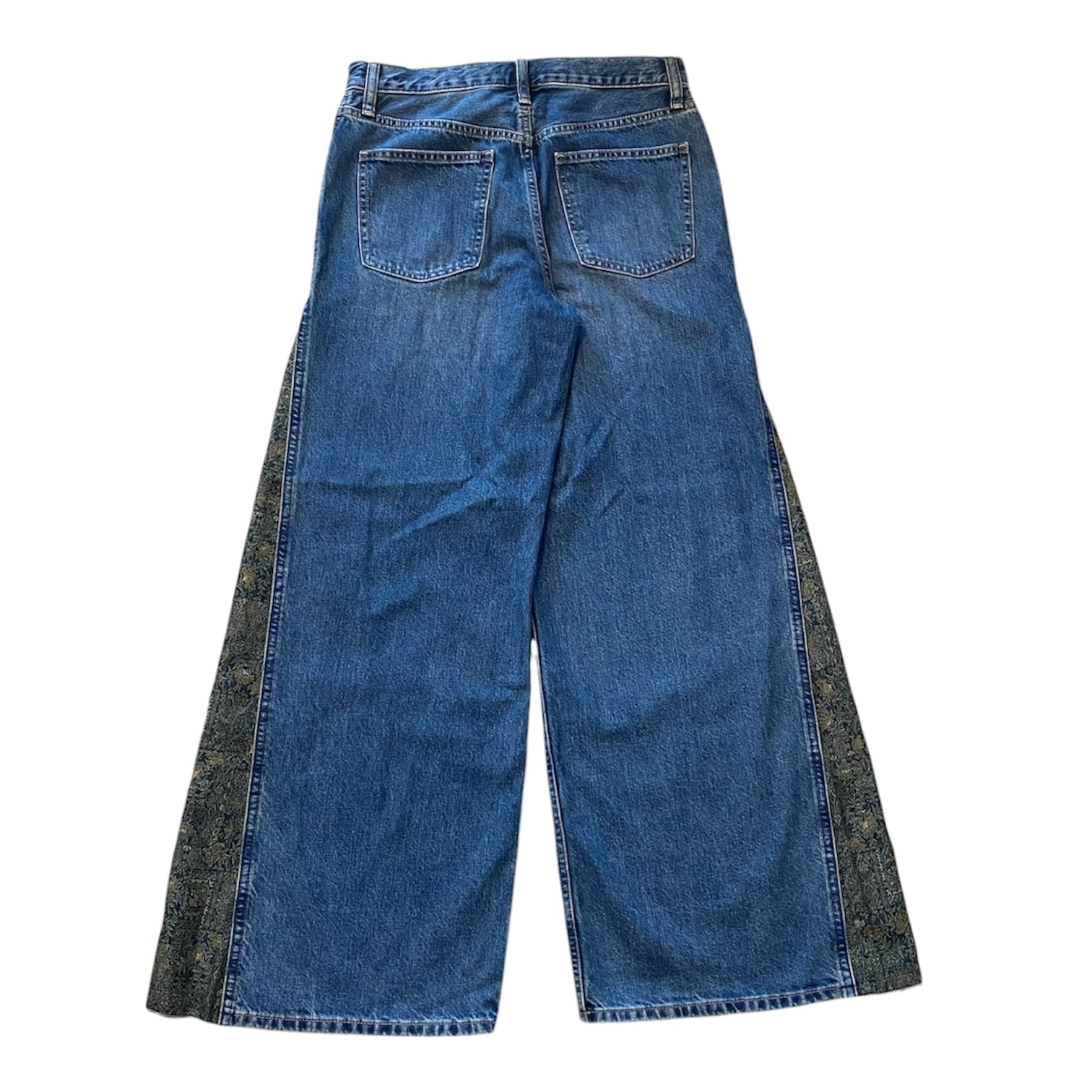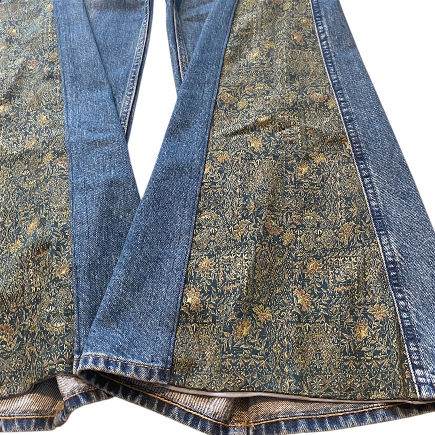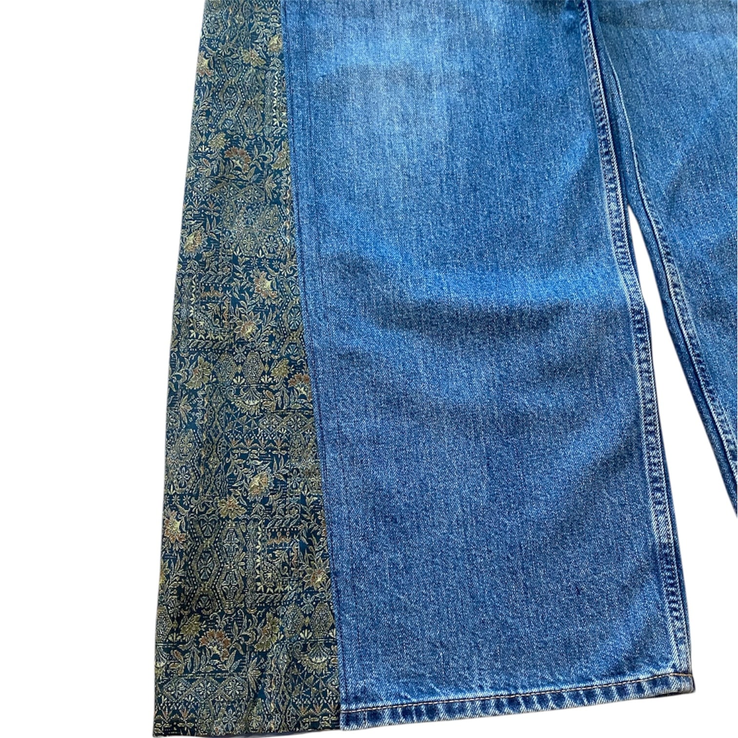 Vintage flared jeans combined with Japanese kimono fabric on the sides. Each pair is unique and handmade. Perfect for casual or stylish streetwear.