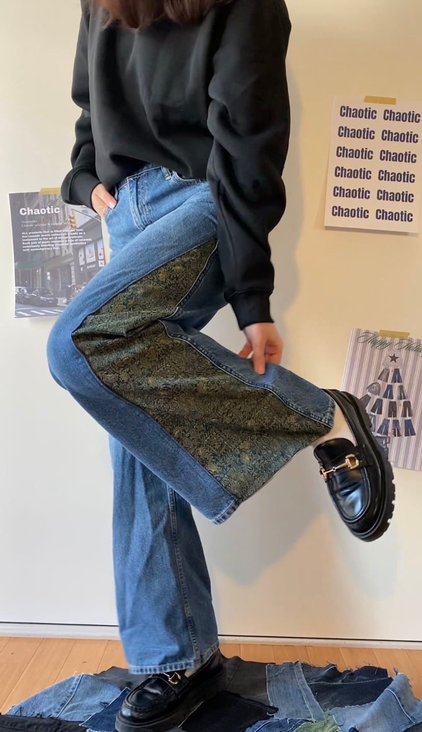 #着物デニム #フレアデニム #リメイク古着 #和柄デニム #ユニークファッション #一点物デニム #vintagejapan #kimonojeans #flareddenim