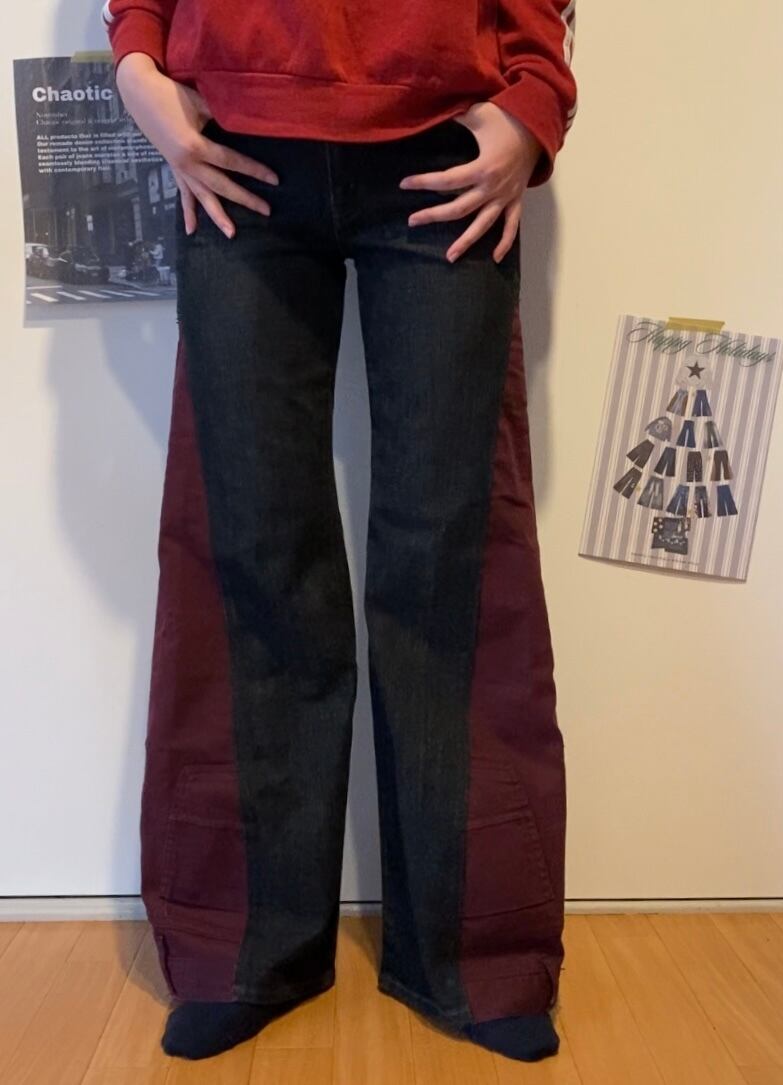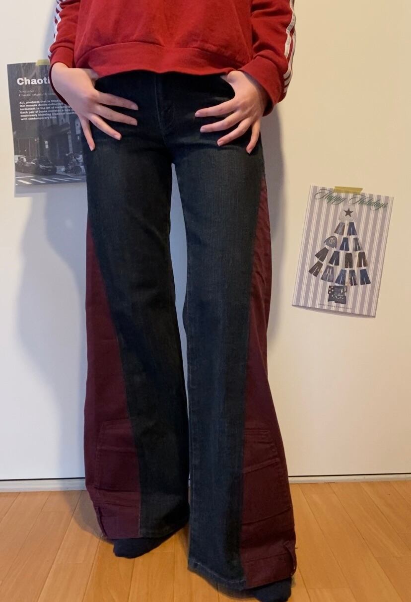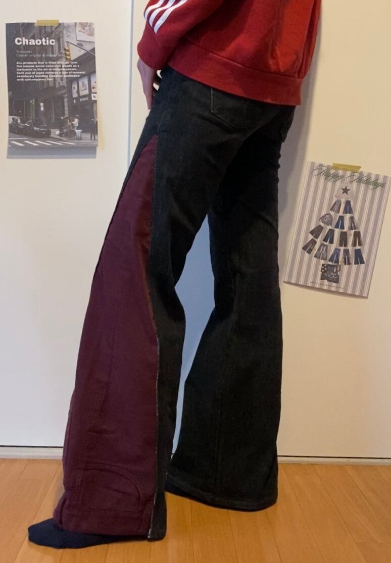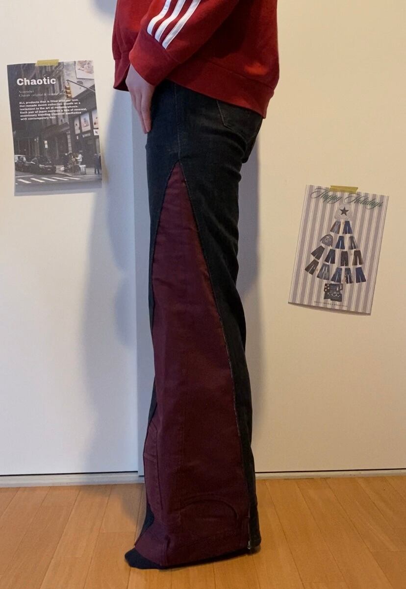 フレア部分にドッキングしたレッドデニムがパンチ効いてる一本。