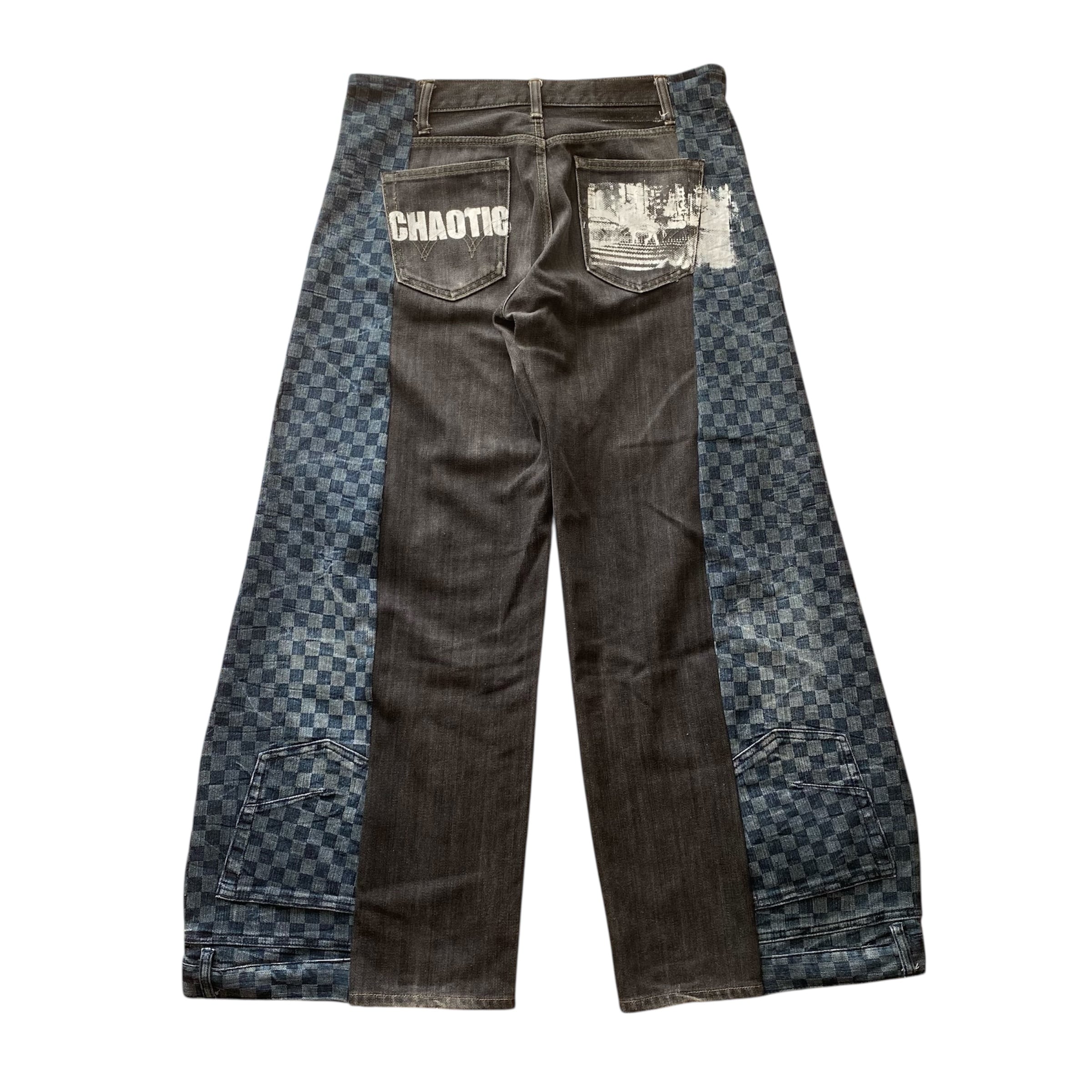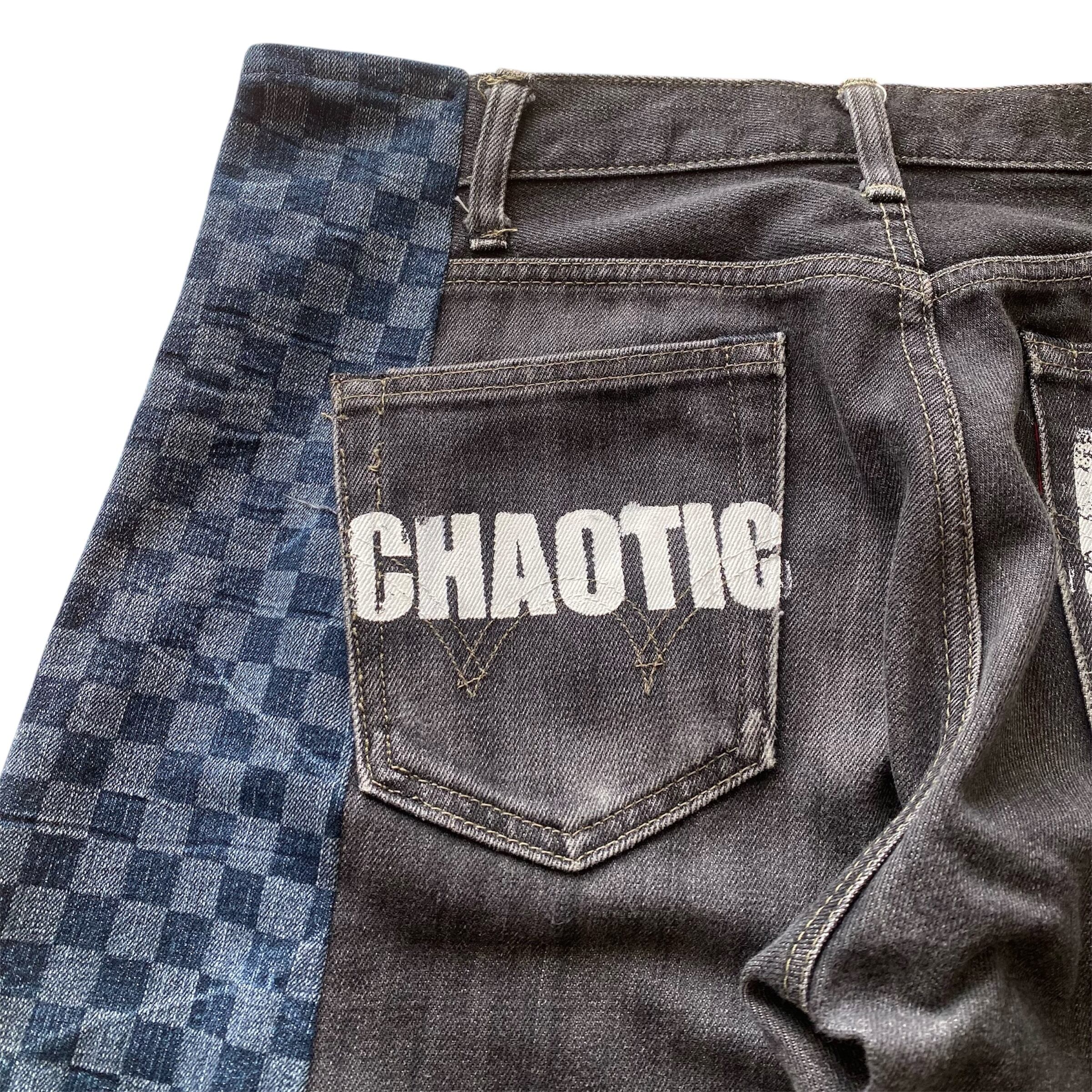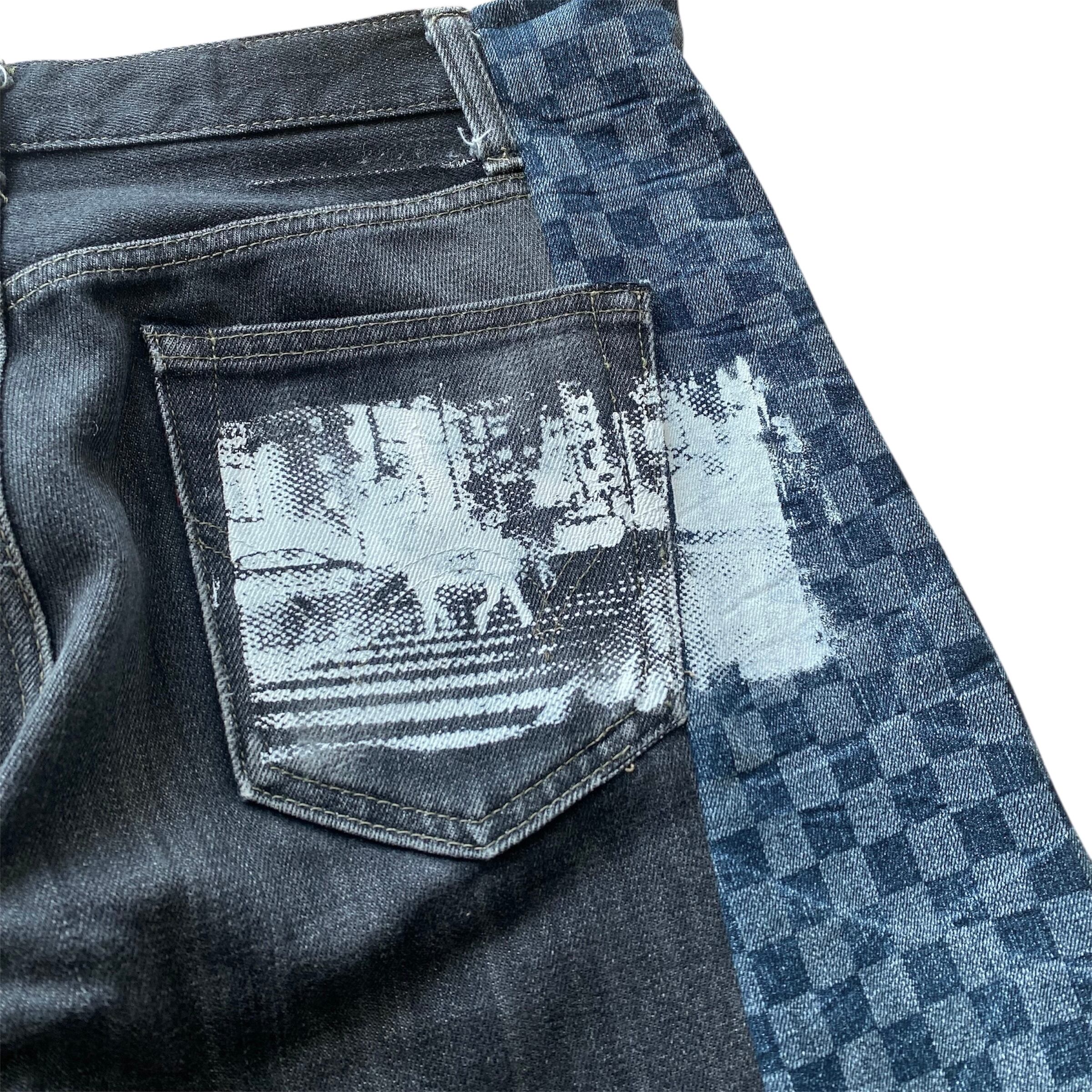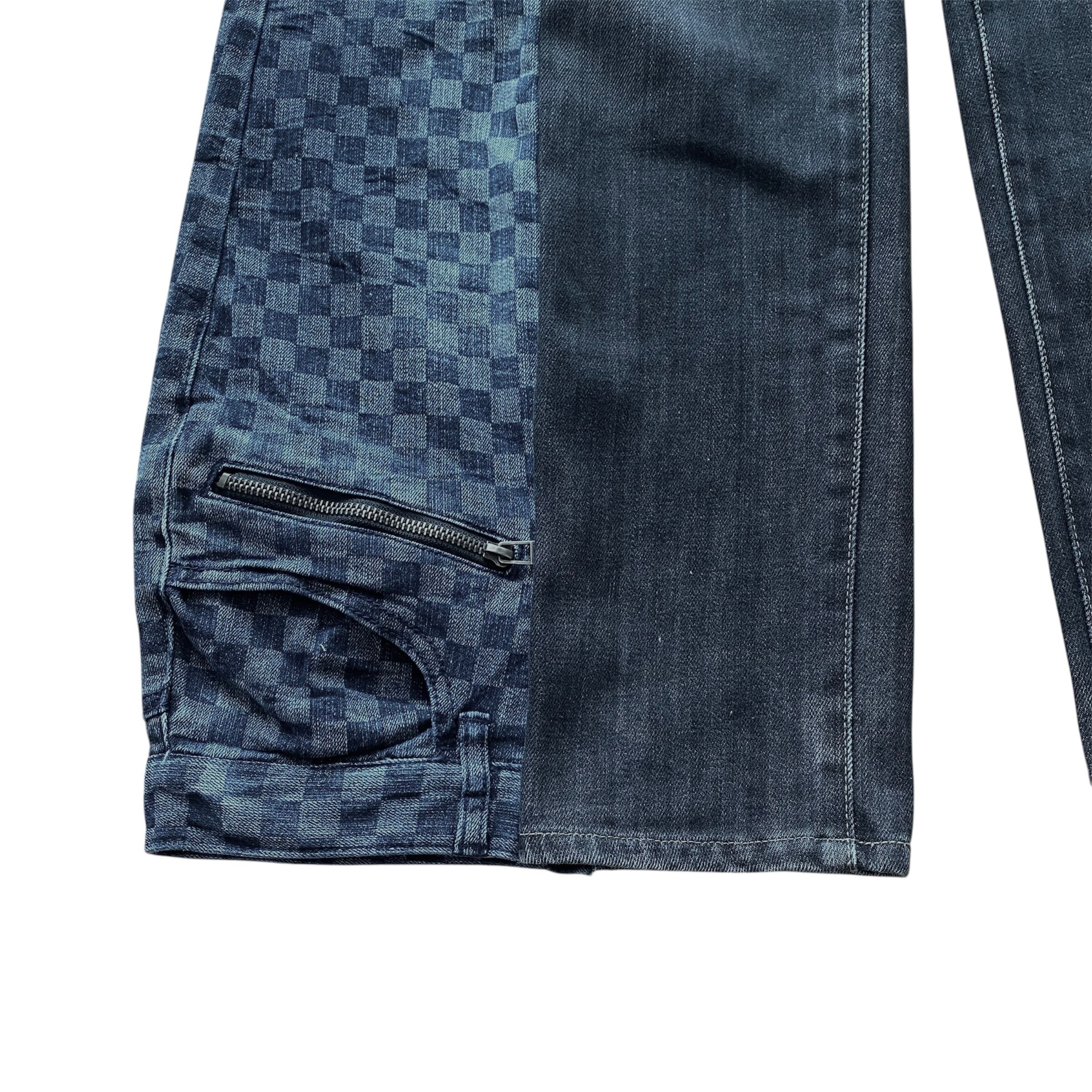 珍しいチェッカー柄デニムと合わせた一点物のリメイクデニム。