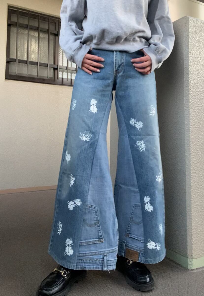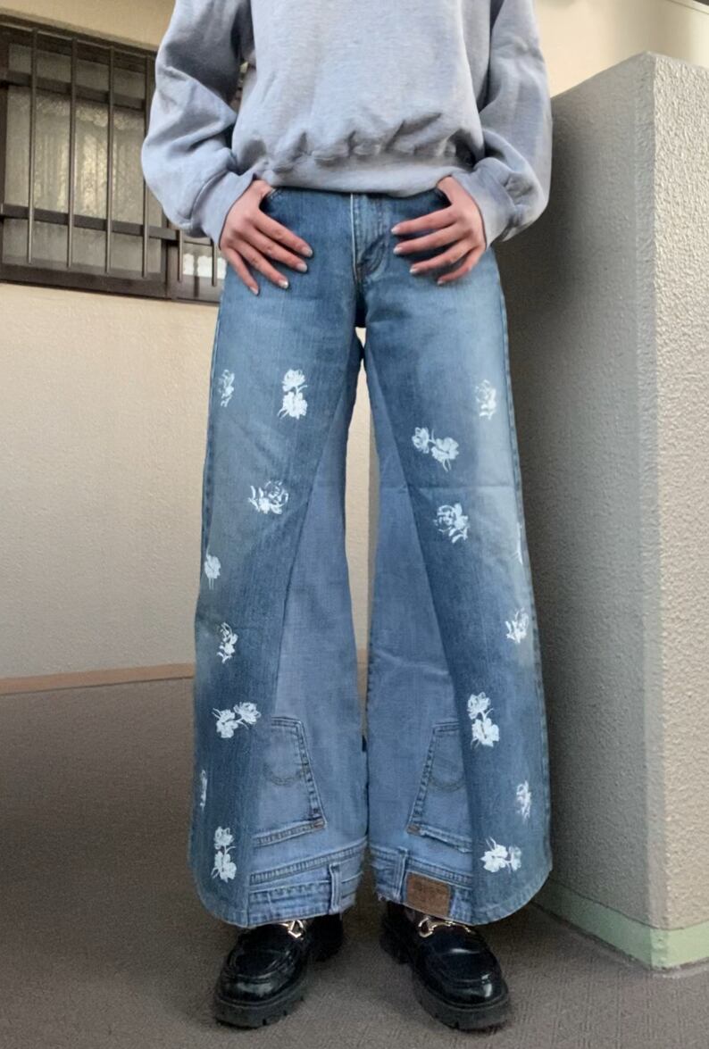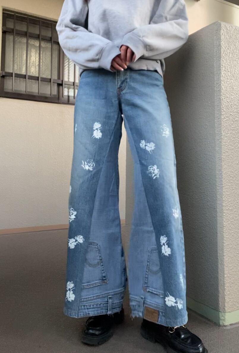 大振りの花柄をシルクプリントしたデニムのup side down✶