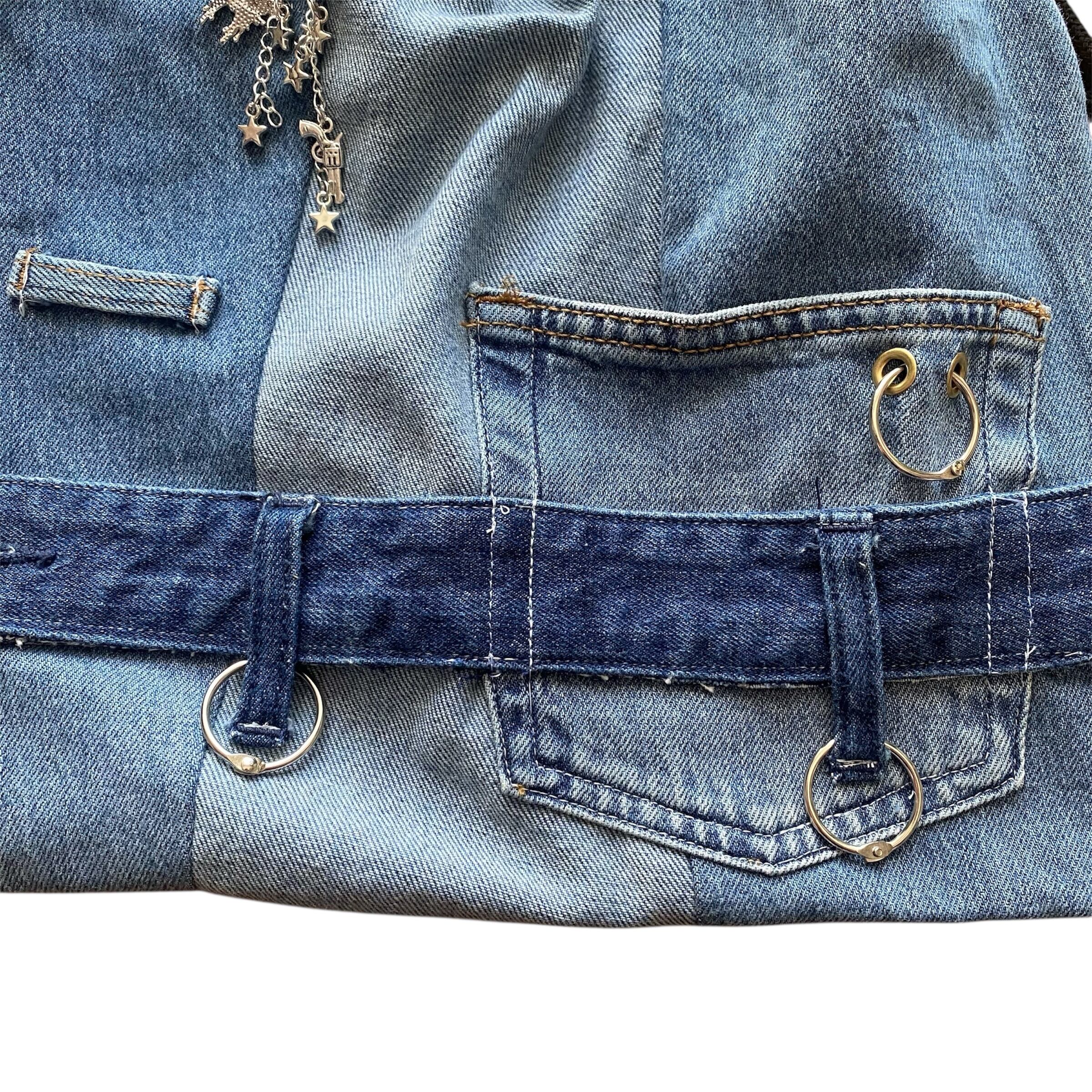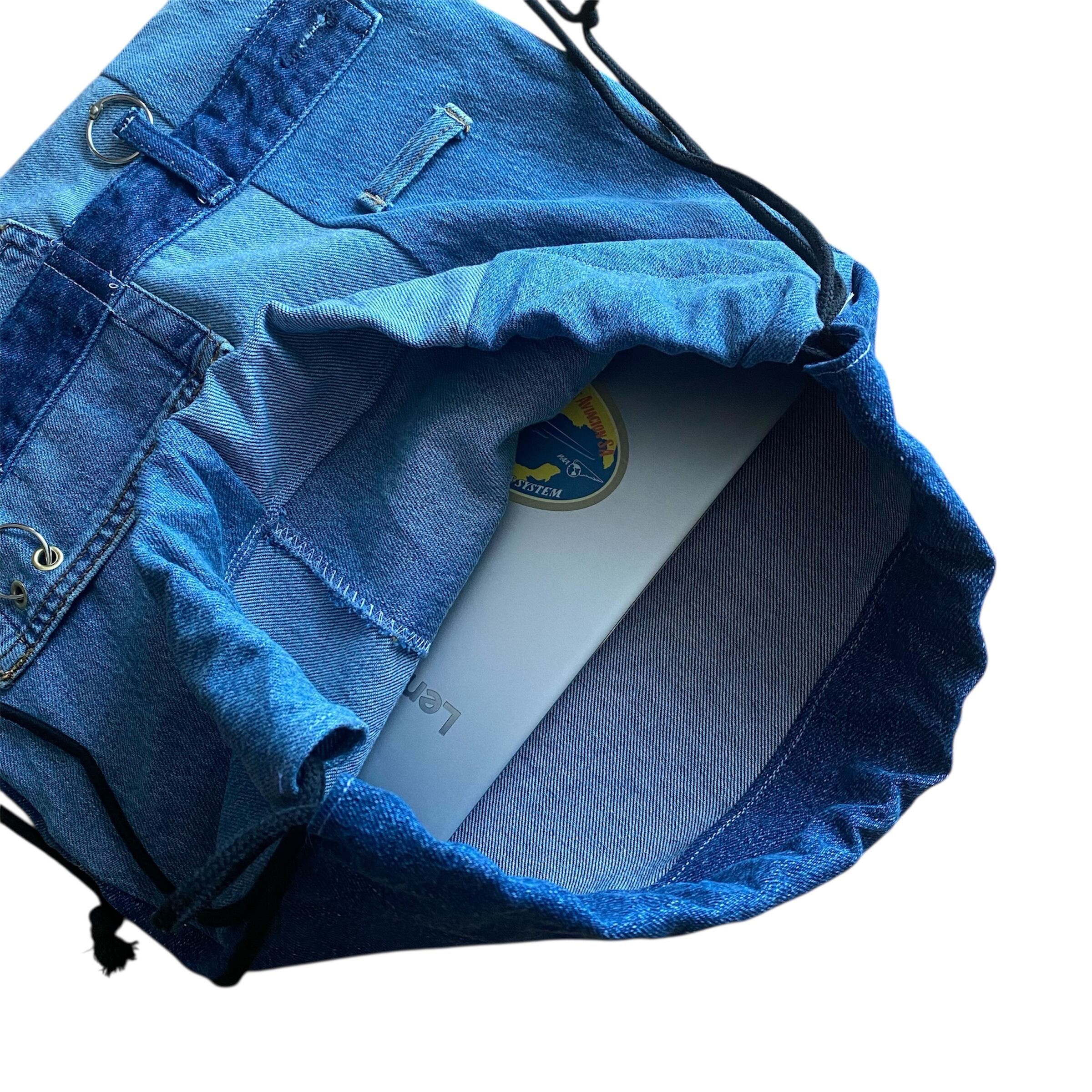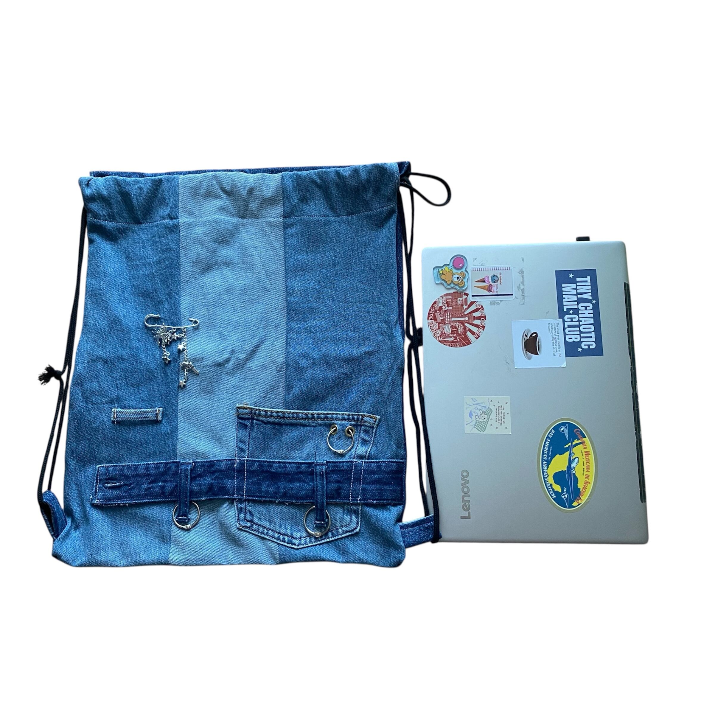 USEDデニムを使用した再構築ナップザックです。デニムとの相性抜群な特製チャーム付き✶