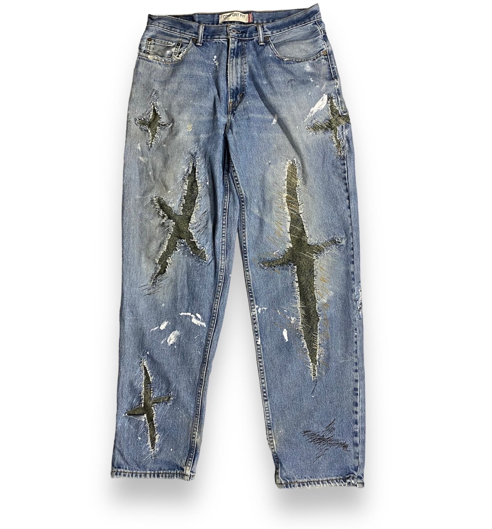 デニムにあった、ダメージとペイントを活かしてグランジな八つ裂き風にRemake。