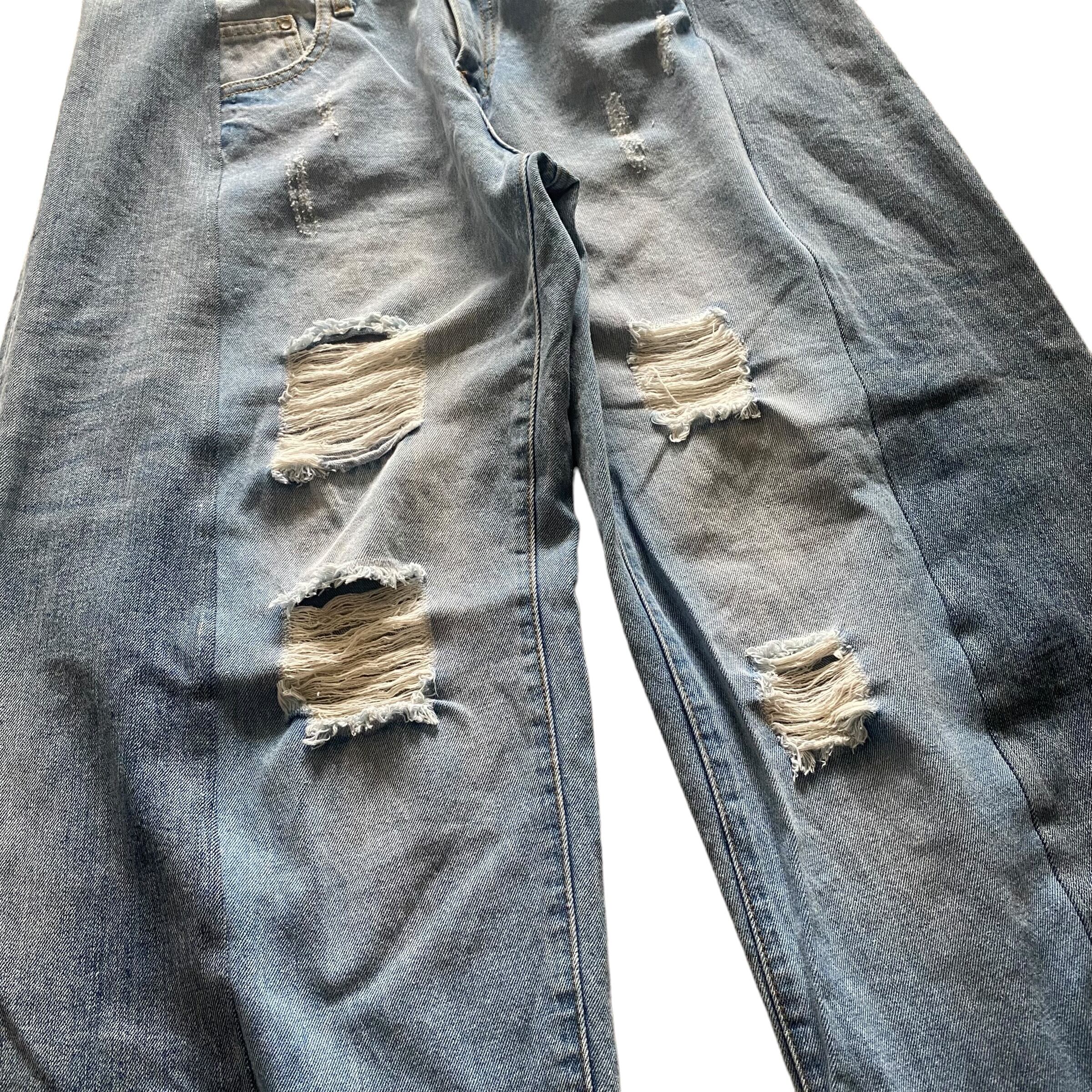 唯一無二 ドッキング リメイクデニム 個性的 再構築デニム 色褪せ ヴィンテージ加工 逆さデニム インディゴ バギージーンズ ワイドパンツ 大きめサイズ 再構築デニム 変形デニム ユニセックス アメカジ デザインデニム デストロイ Y2K 個性的 一点物 カスタムボトム 海外ファッション リビルド 切り替えし 色落ちデニム 原宿ファッション モードファッション ストリートファッション スケーター シティーボーイ 古着男子 古着女子 古着ファッション ジーンズ メンズ レディース 80s 90s