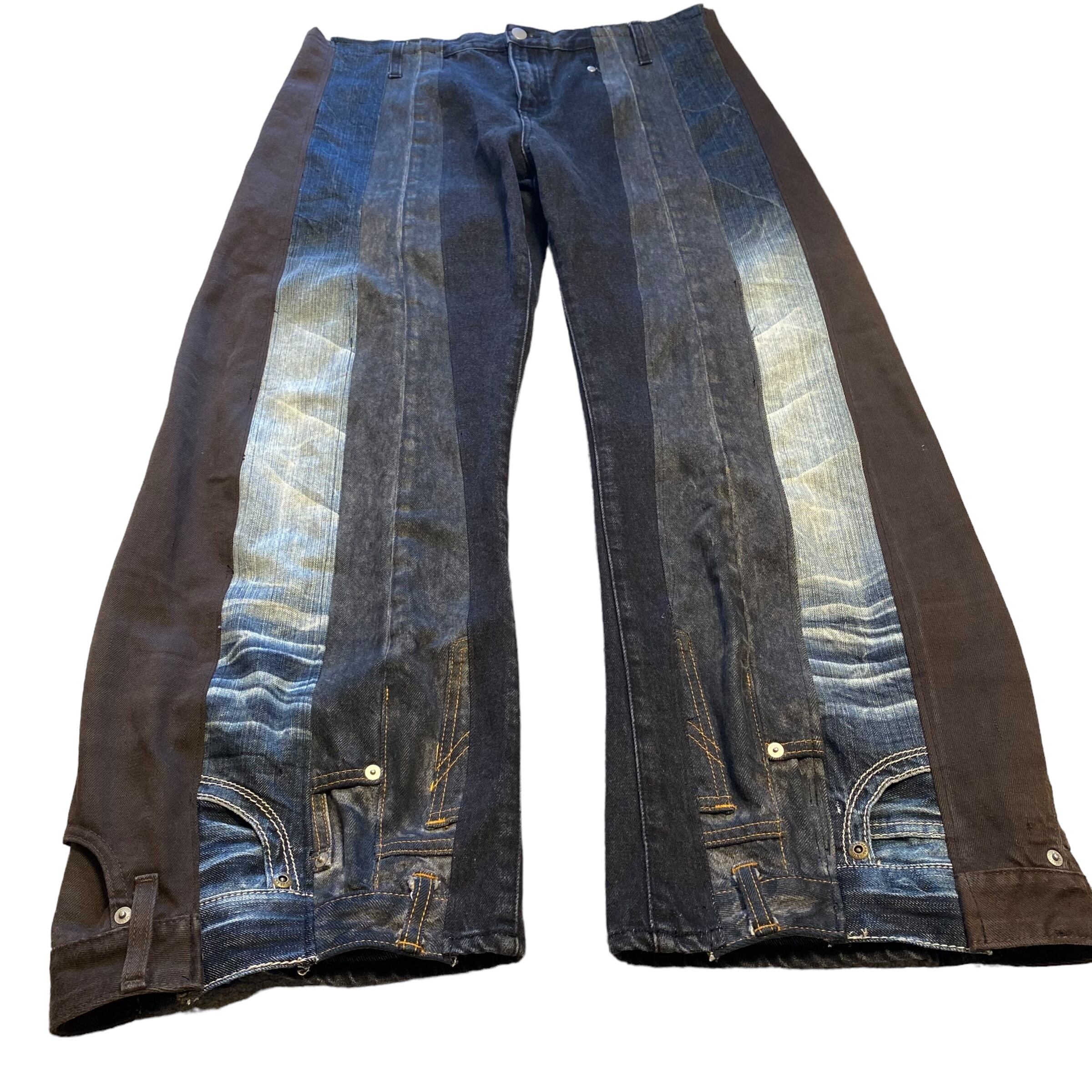 再構築デニム 変形デニム 色落ちデニム ダメージ加工 ユニセックス アメカジ デザインデニム デストロイ Y2K 個性的 一点物 カスタムボトム 海外ファッション リビルド 切り替えし 平成 韓国 原宿ファッション モードファッション ストリートファッション スケーター シティーボーイ 古着男子 古着女子 古着ファッション ジーンズ メンズ レディース 80年代 90年代